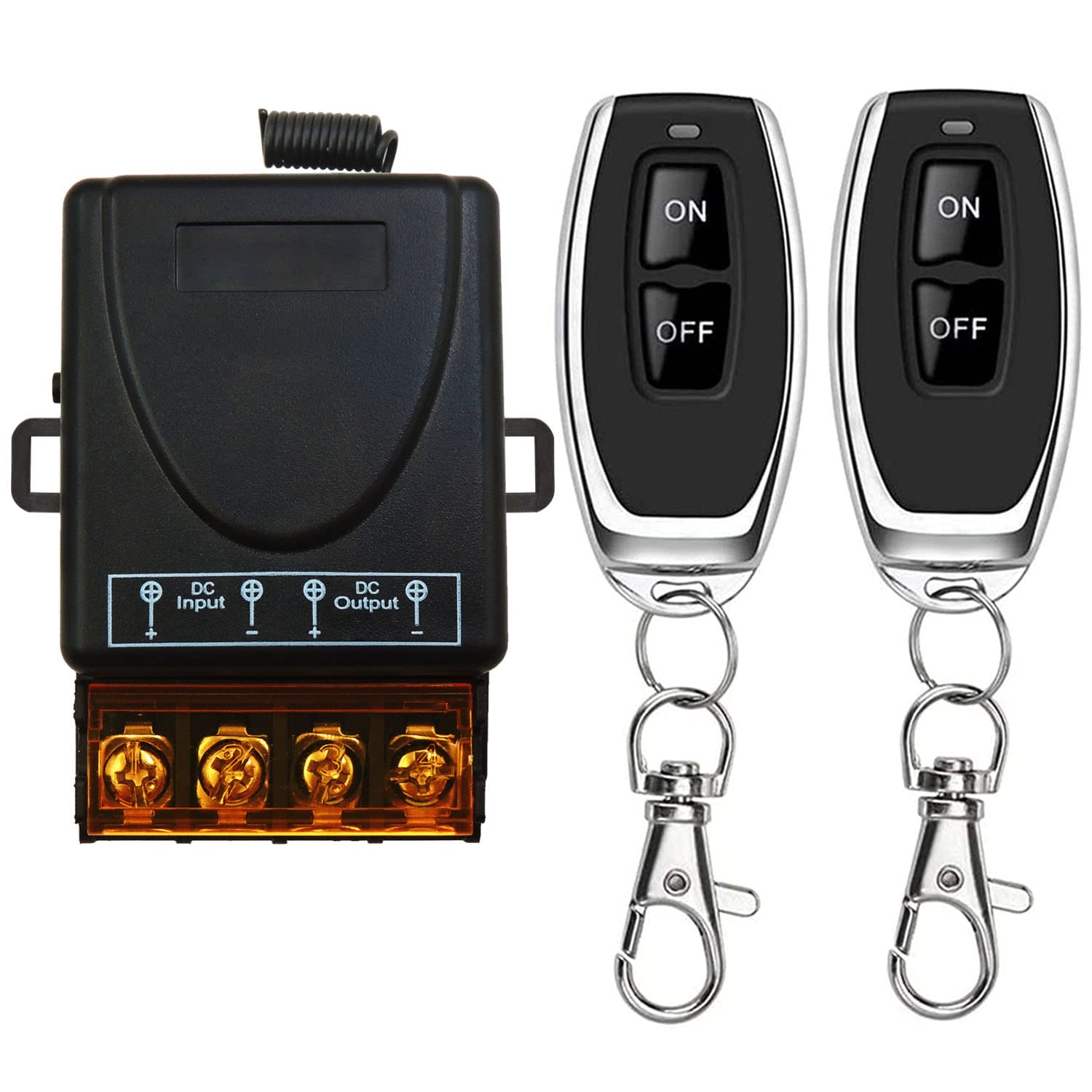 AENTIA 433Mhz Wireless Remote Control Switch with 328ft Long Range Radio Control DC 12V 24V 36V 48V 12V-75V 40A Relay Receiver and 2 Transmitters Keyfobs for Lighting Water Pump Household Appliances